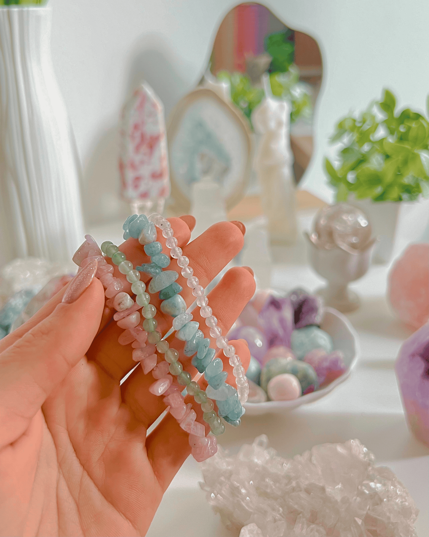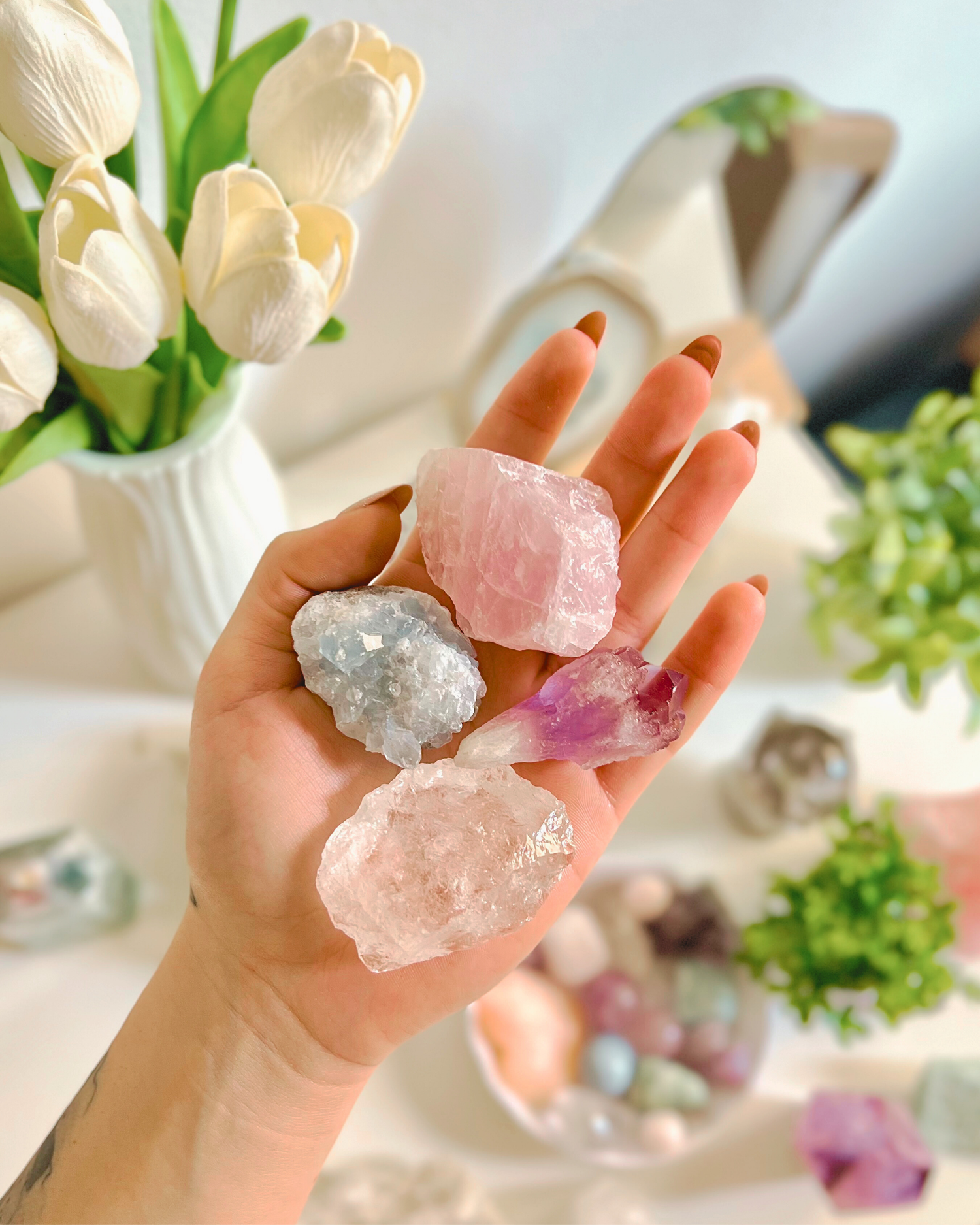 Escríbeme por Instagram - @itswhiteshine y te enviaré fotos de las piezas disponibles para que elijas la que más conecte contigo.