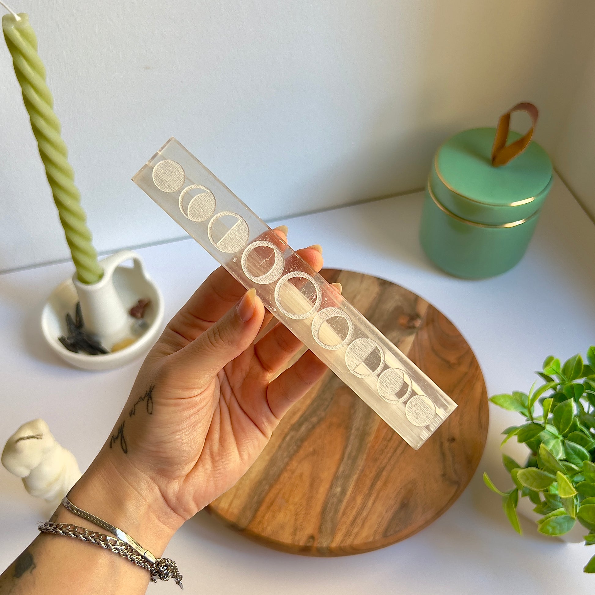 La selenita es un mineral que no necesita limpieza. Además, puede limpiar y cargar el resto de tus minerales. Simplemente colócalos encima de la placa y déjalos durante un día o el tiempo que tu consideres apropiado. ¡Y listo! Tus minerales estarán limpios y cargados, listos para ser utilizados.