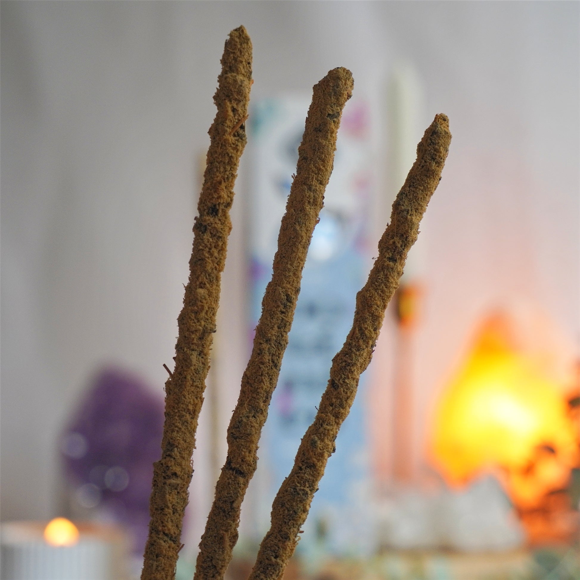 Su aroma profundo y sagrado transforma el ambiente, creando un espacio de protección, claridad y conexión espiritual.