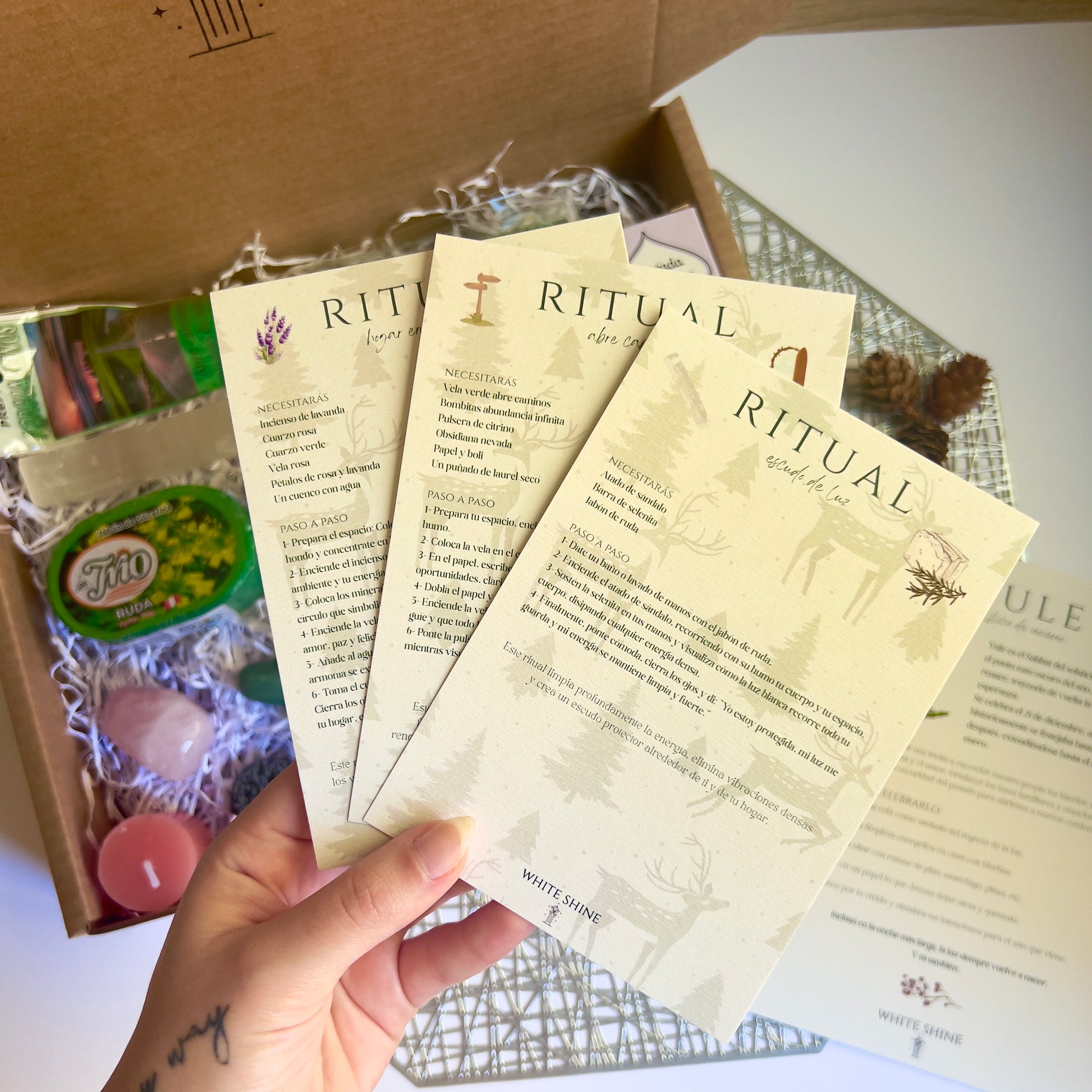 Tarjetas explicativas: Cada caja incluye una guía con explicaciones, rituales y formas de usar cada elemento, para que saques el máximo provecho de tu experiencia.